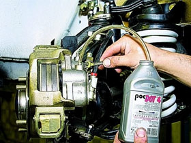 — жидкость для гидропривода сцепления и тормозная жидкость.