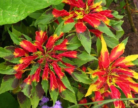 Цвета стебля и листьев также различные – однородный фиолетовый, ярко-зеленый, красный или их сочетания. Окраска соцветий также варьируется: