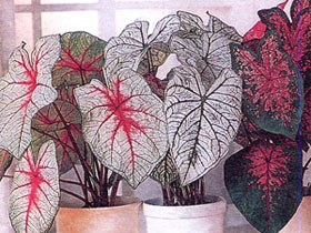 Слоновые уши, Христово сердце — это тоже о цветке каладиум. Все эти названия цветок получил из-за формы своих красиво окрашенных тонких, как бумага, листьев. Каладиум — растение сезонное, живет с поздней весны до осени. С наступлением осени постепенно теряет листья и зимой отдыхает. В это время горшок с клубнем надо убрать в темное место — в кладовку, под кровать или под ванну. Но не забывайте о нем до самой весны: время от времени проверяйте каладиум и, если увидите, что земля пересохла, немного полейте.Весной достаньте горшки, осмотрите клубни. Подсохшие части удалите, присыпьте углем ранки. Посадите клубни в свежий рыхлый субстрат с добавлением древесного угля и как следует полейте цветок. Глубина посадки каладиума должна быть равна диаметру клубня.