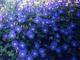 Ипомея — это одна из самых красивых садовых лиан. Но при желании можно вырастить цветок и в жилом помещении. Сортов ипомеи очень много: «Синяя звезда», «Розита», «Серенада». «Летающие блюдца». «Милки Уэй», «Флаинг Соуренс», «Кардинал» — всех не перечислить. Цветки ипомеи — однолетника могут быть синего, лилового, белого, красного цветов, есть сорта с цветками в белую и голубую полоски.