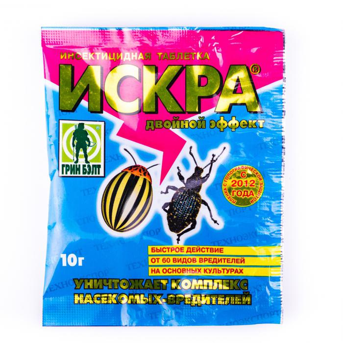 - Искра-М – своего рода «скорая помощь» в трудоемком и сложном деле борьбы с вредителями. В первую очередь уничтожает всевозможных листо-грызущих насекомых (гусеницы, щитовки, плодожорки, клещи, долгоносики и пр.). Принадлежит к классу современных двухкомпонентных препаратов, за счет чего обладает усиленными рабочими характеристиками. Содержит в составе калийную подкормку, помогающую кочанам в ускоренном режиме восстанавливать поврежденные участки листьев. Полностью выходит из растения через 20 дней.