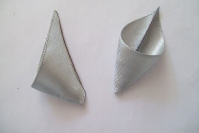 - Взять серую ленту. Нарезать из неё полоски длиной 6 см. Скрутить из них лепестки.
