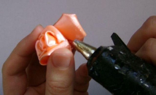 - Снизу на следующий лепесток капнуть горячий клей. Завернуть его на предыдущий элемент.