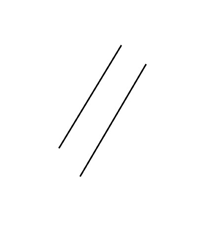 - С помощью линейки и простого карандаша на листе бумаги начертить две параллельные диагональные прямые.