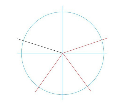 - Затем полученную геометрическую фигуру разделить на 5 равных частей. Угол каждого сегмента должен составлять 72 градуса.