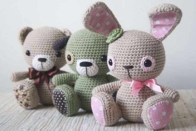 Сначала вывязываются отдельные части изделия, а затем они соединяются в общую композицию при помощи обычных ниток. Мягкие игрушки набивают синтепоном, холлофайбером или другим подходящим наполнителем. Для оформления можно применять дополнительные материалы: бусины, фетр и прочее.