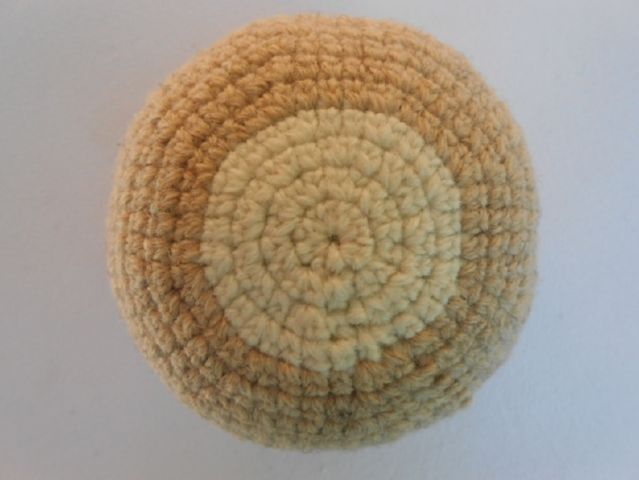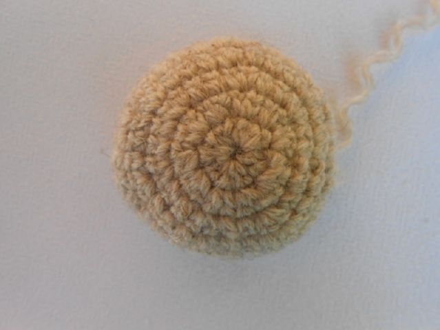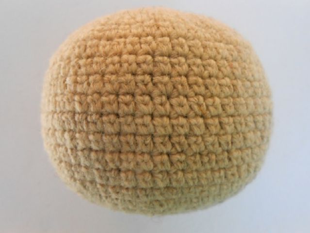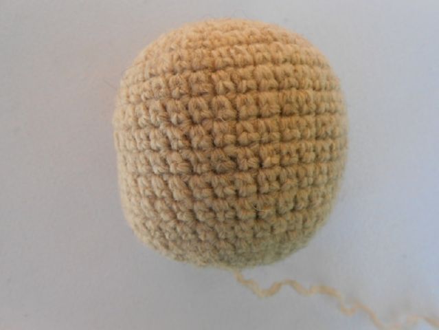 Сначала нужно сделать голову для бегемотика. Эта деталь состоит из 18 рядов. Для создания головы используется бежевая пряжа: