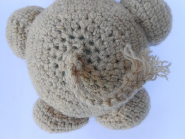 Чтобы сделать хвост бегемотику, нужно набрать 15 воздушных петель. Затем связать 1 ряд сбн. Пришить готовый хвостик к туловищу, не забыв сделать кисточку на кончике.