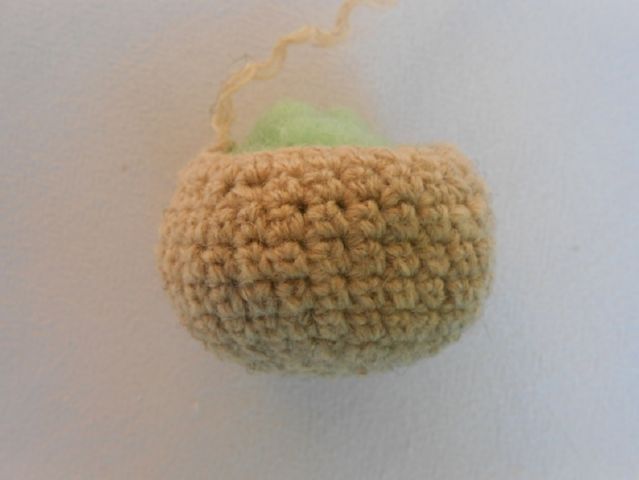 Теперь нужно набить деталь наполнителем, пока кольцо полностью не сомкнулось, и провязать последние два ряда.