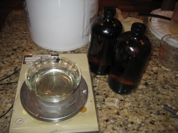 4. Отмерить на весах оливковое масло и отдушку.