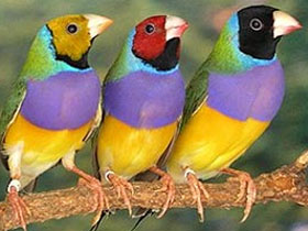 В природе амадины — птицы из семейства вьюрковых ткачиков — встречаются в Африке. Австралии и в Юго-Восточной Азии. Наиболее крупные и громкоголосые из видов амадин — рисовые, самые эффектные — зебровые и бриллиантовые, ну а самое красочное оперение досталось амадинам Гульда.