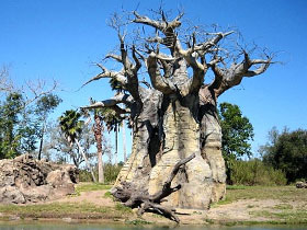 Стволы баобабов часто выглядят ободранными и искалеченными из-за того, что слоны пытаются добыть влагу, накопленную в древесине. Бабуины любят лакомиться большими мясистыми плодами баобабов, отчего их даже называют обезьяньим хлебом. Цветы баобабов живут всего лишь одну ночь, а опыляют их летучие мыши. В дуплах деревьев, среди ветвей и листвы находят укрытие насекомые и птицы.