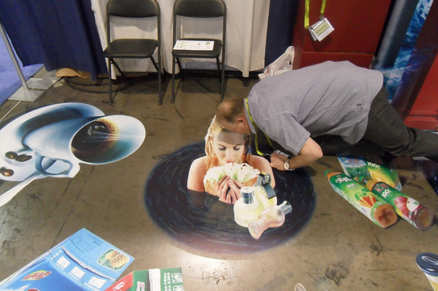 Относительно новый тренд в дизайнерских ремонтах и рекламе – 3Д-полы и 3Д-наклейки, которые заставляют буквально отказываться поверить своим глазам. На постсоветском пространстве тенденция не приобрела массового характера (пока?), а вот наши азиатские соседи по планете буквально влюбились в возможность подшутить над знакомыми или не очень людьми, создав иллюзию объема или провала там, где должна быть плоская ровная поверхность. Причем, если наклейки (преимущественно рекламные) имеют вполне практичное значение, то что руководит людьми, которые делают себе подобные наливные полы, разве что им самим понятно.