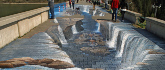 Относительно новый тренд в дизайнерских ремонтах и рекламе – 3Д-полы и 3Д-наклейки, которые заставляют