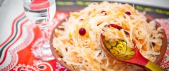 Мелко нашинкованная или сделанная кусками в кастрюле, 3-литровой банке или ведре квашеная капуста —