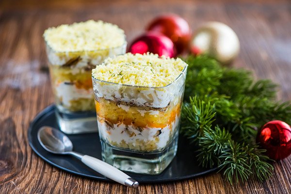 Настоящим украшением новогоднего стола станет оригинальный слоеный салат с куриным мясом, консервированными ананасами и кукурузой. На приготовление уйдет совсем немного времени, а в результате получится сочное, нежное и необычное по вкусу праздничное блюдо.