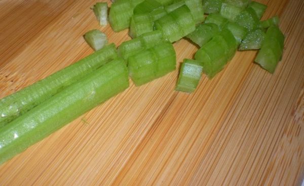 - Нарезать корень сельдерея. Часть оставить для украшения.