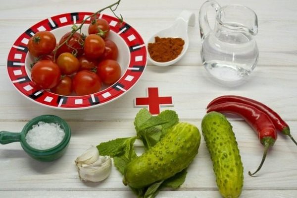 Для приготовления супа гарпачо применяют следующие ингредиенты: