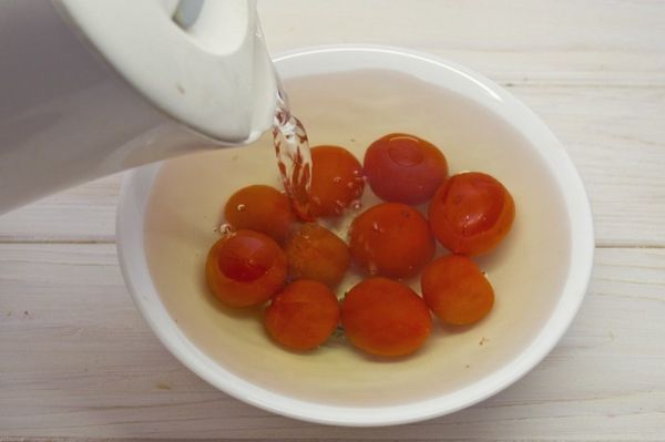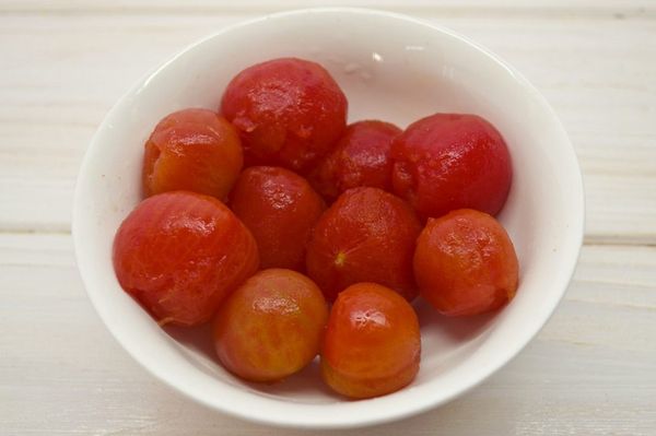 - Когда помидоры будут избавлены от кожуры, можно оставить их в миске до полного остывания.