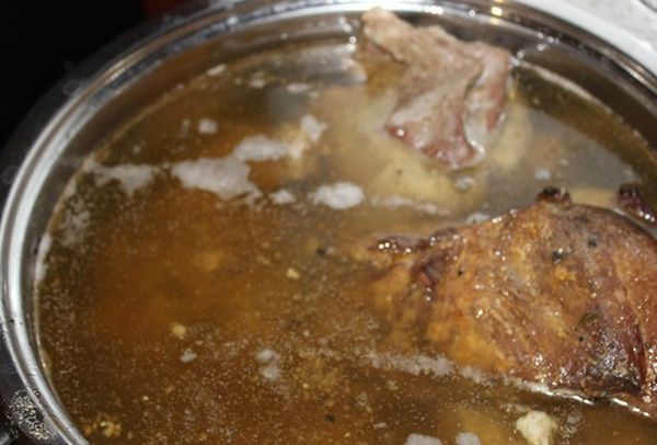 - Помыть мясо и поместить в кастрюлю. Налить воду и поставить на огонь. Посолить и варить 1,5 часа. Когда мясо будет готово, его нужно вынуть из бульона и отложить в сторону.