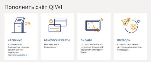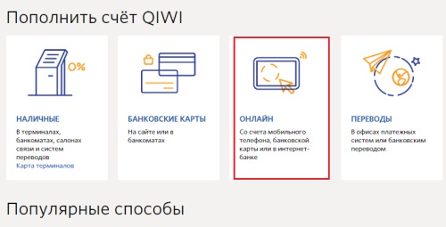 - Прокрутив ниже, вы увидите наиболее популярные способы пополнения Qiwi, среди которых есть и без комиссии (терминалы QIWI), онлайн банкинг ВТБ24, Альфа-Банк и т.д.