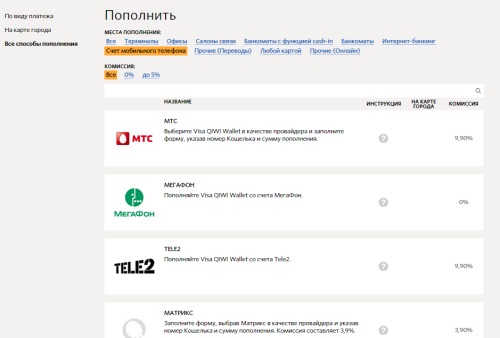 Как мы уже говорили, пополнение кошелька киви возможно различными способами, среди которых вы сможете найти один или несколько наиболее удобных для себя. Но проблема заключается в том, что практически все сервисы требуют определенный процент за услуги пополнения, поэтому выбирать следует, исходя из наименьшей ставки.