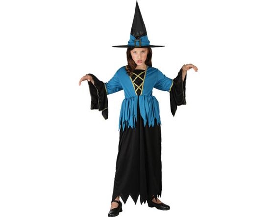 Темно-синее платье, шляпа с высокой тульей из плюша, обклеенная звездами из золотистой фольги, и такая же накидка на плечи. Можно вручить и палочку, как у феи, и маленькую детскую метлу — ведь именно так передвигаются ведьмы!