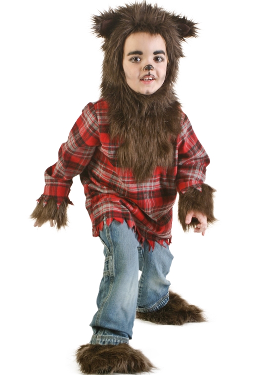 Одежда как таковая может быть любой, лучше – серой или черной, но поверх обязательна меховая серая жилетка. К шортам или брюкам прикрепите серый хвост (из старого воротника, например). Маску оборотня можно сделать чисто условной — полумаску из картона, с ушами; или большую, надевающуюся сверху на голову и не закрывающую лицо, зато со множеством зубов из картона, выкрашенных в белый, и желтыми глазами.