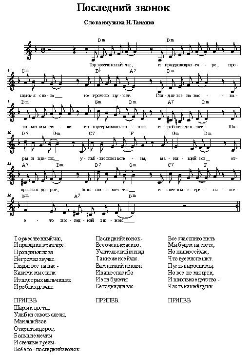 Песни на последний звонок 11 класс: тексты и ноты