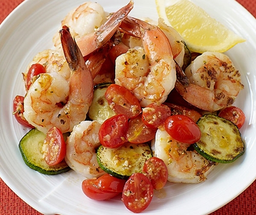 Креветки с цукини в апельсиновом соке:
