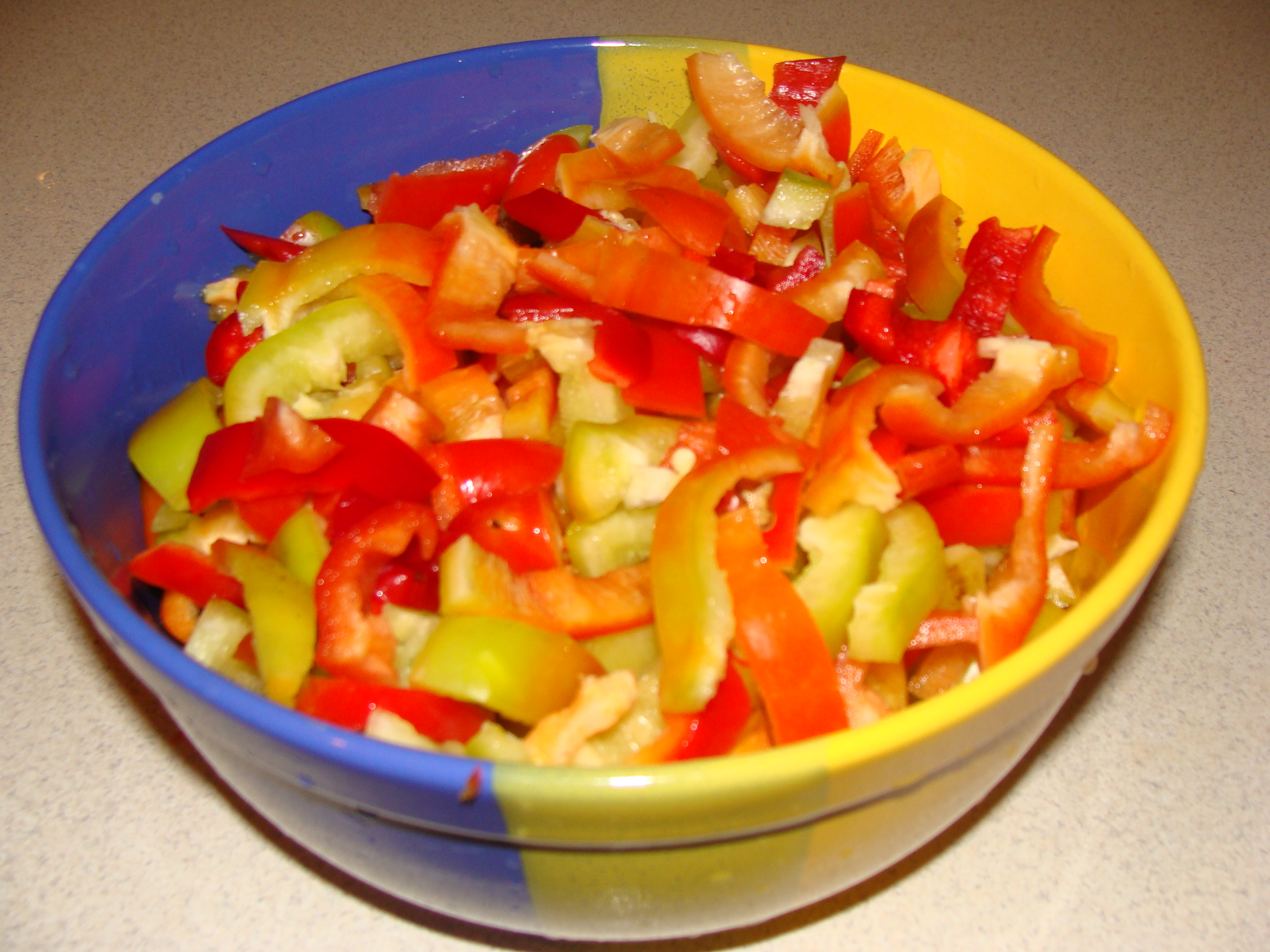 - Перцы вымыть, семечки и сердцевину удалить, мякоть порезать на кусочки.