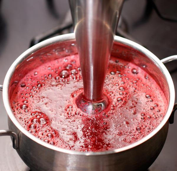 - В воде растворить сахар, хорошо перемешать и на среднем огне довести до кипения. Когда жидкость начнет кипеть, добавить ягоды и проварить в течение 10 минут. Потом снизить уровень прогрева до минимума и продолжить готовить еще 15-20 минут.