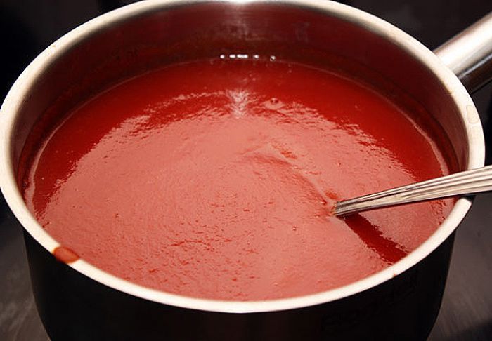 Если вы собираетесь приготовить томатный сок на зиму через мясорубку, то имейте ввиду, что его консистенция получается довольно плотной и неоднородной. Готовый продукт больше напоминает томатный соус и может использоваться не только как напиток, но и как приправа к мясу или заправка для овощного супа, борща и свекольника.