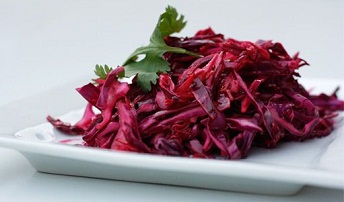 - Чтобы ваш салат красиво смотрелся, нужно как можно мельче нарезать овощи. У качана отрываем верхние листья, промываем его. Разрезаем вилок на небольшие части для удобства шинковки. Мелко шинкуем острым ножом вручную или на специальной терке. Свеклу очищаем и промываем. В сыром виде трем на корейской терке. Лук так же чистим, промываем и режем тонкими полукольцами. Перемешиваем